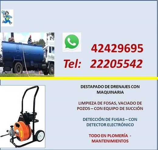 fosas, pozos, bajadas, cañerías, trampas de grasa
